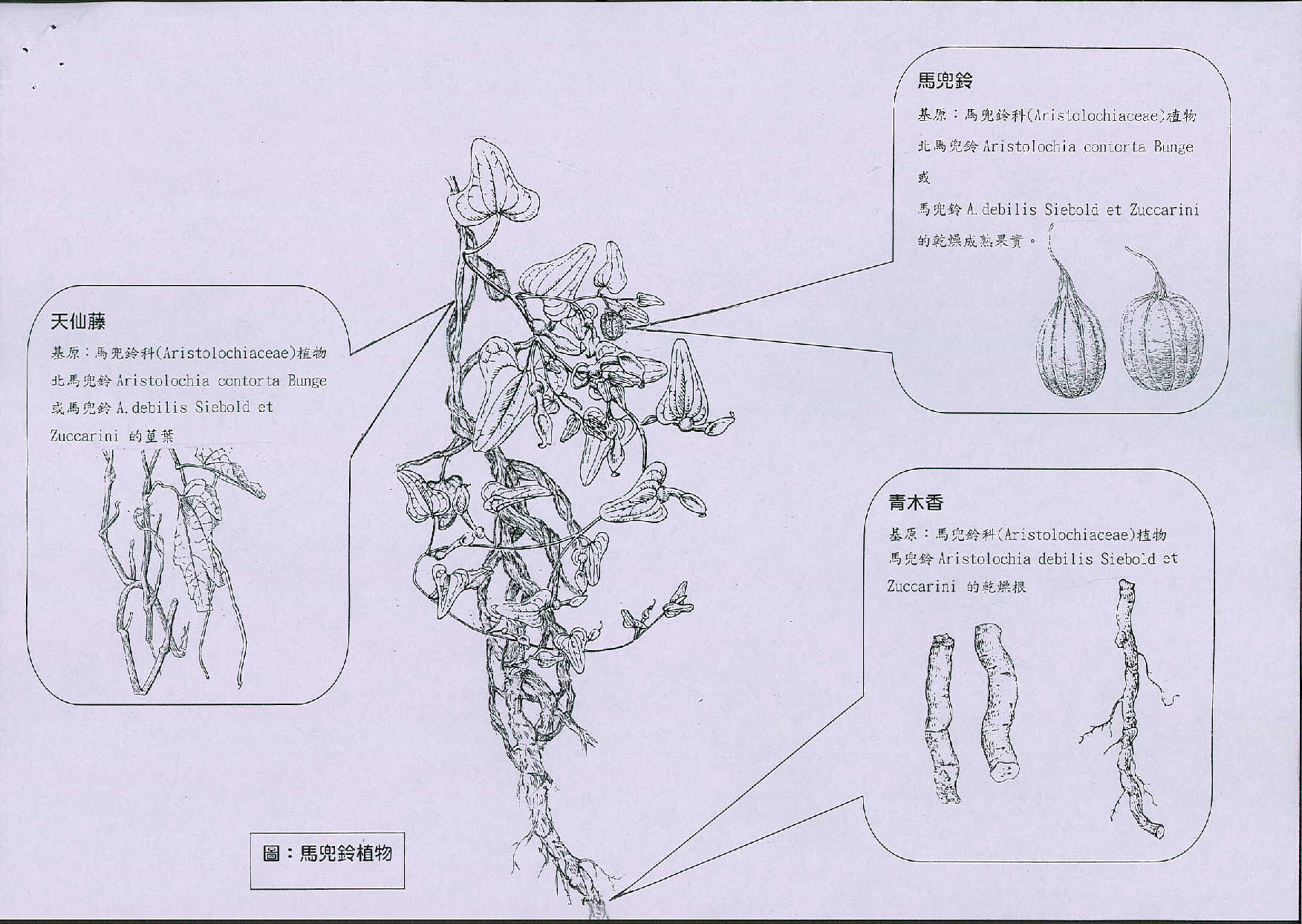 公告「含馬兜鈴酸之中藥材(廣防己、青木香、木通及馬兜鈴等)之鑑別方法 [ PDF 檔 ] [ DOC 檔 ]