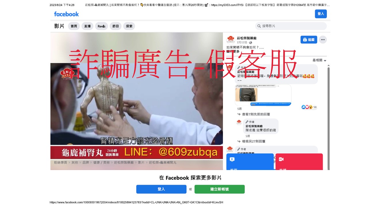 假冒藥廠之臉書詐騙粉絲專頁: