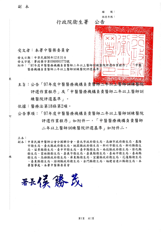 97年度中醫醫療機構負責醫師二年以上醫師訓練醫院評選公告_0020787000.jpg