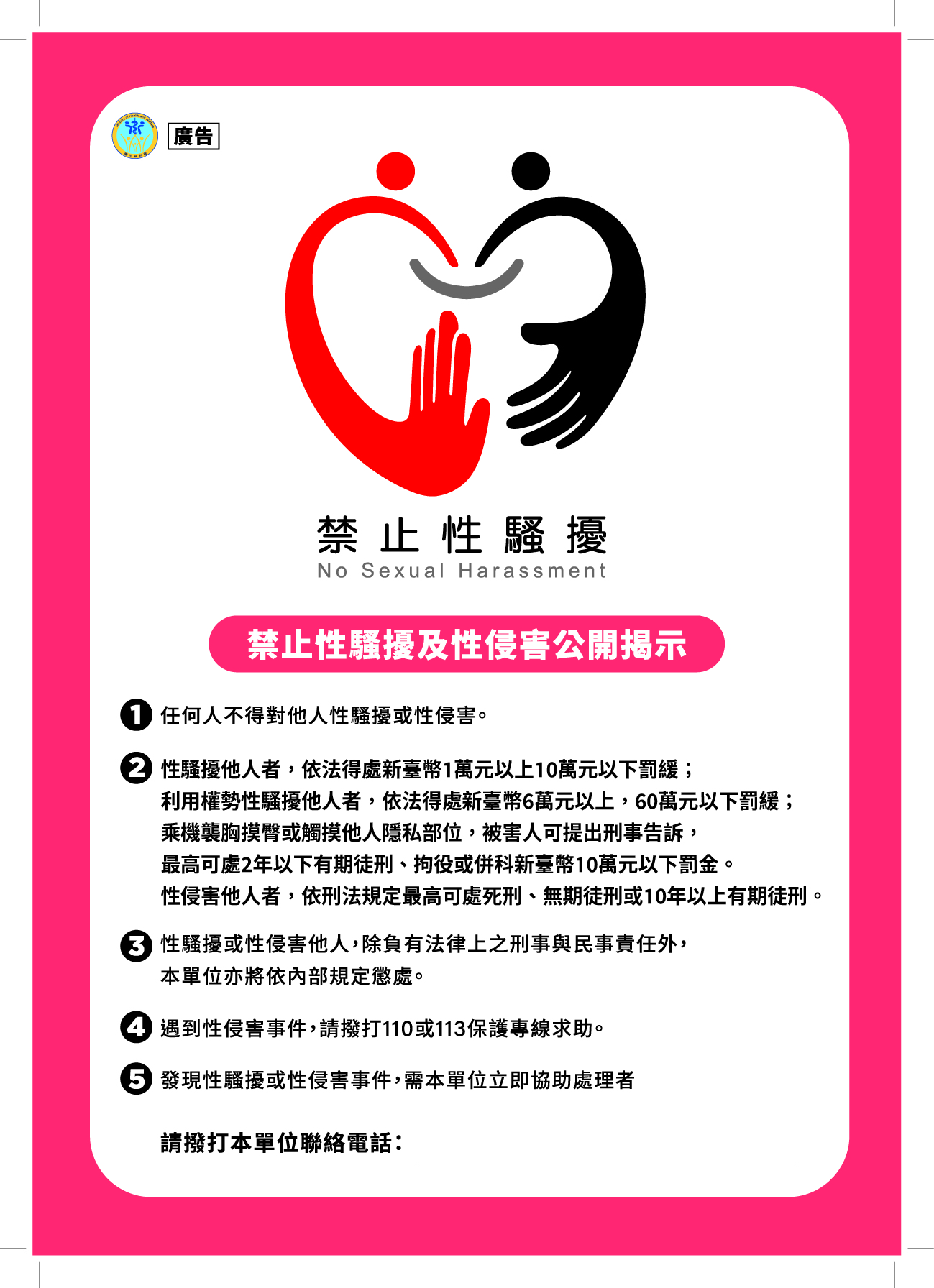 性騷擾防治-禁止性騷擾及性侵害公開揭示海報