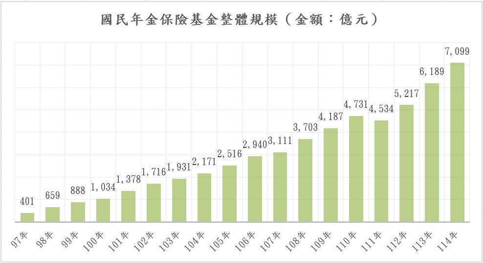 國民年金保險基金整體規模(金額:億元)