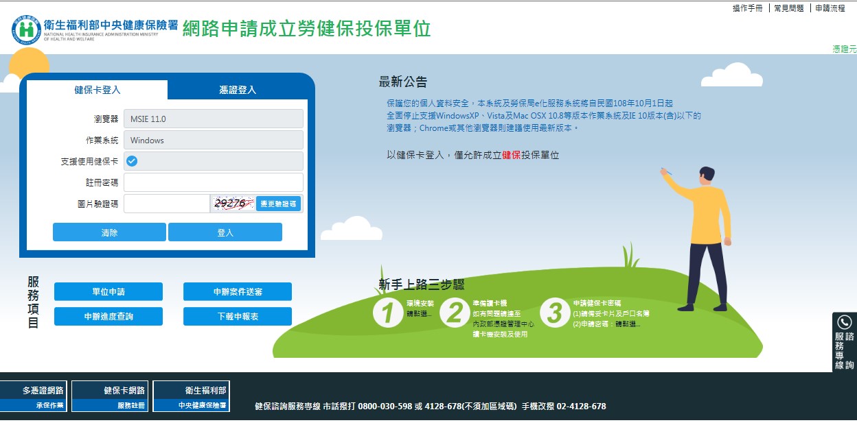 李老闆是位剛創業的負責人,由於業務繁忙,無暇為自己及員工投保健保,正在傷腦筋該如何辦理?健保署報您知,推薦使用目前最便捷的「網路申請成立勞健保投保單位」作業系統,免受時間限制,即便不出門,就可輕鬆完成單位新成立及投保手續。