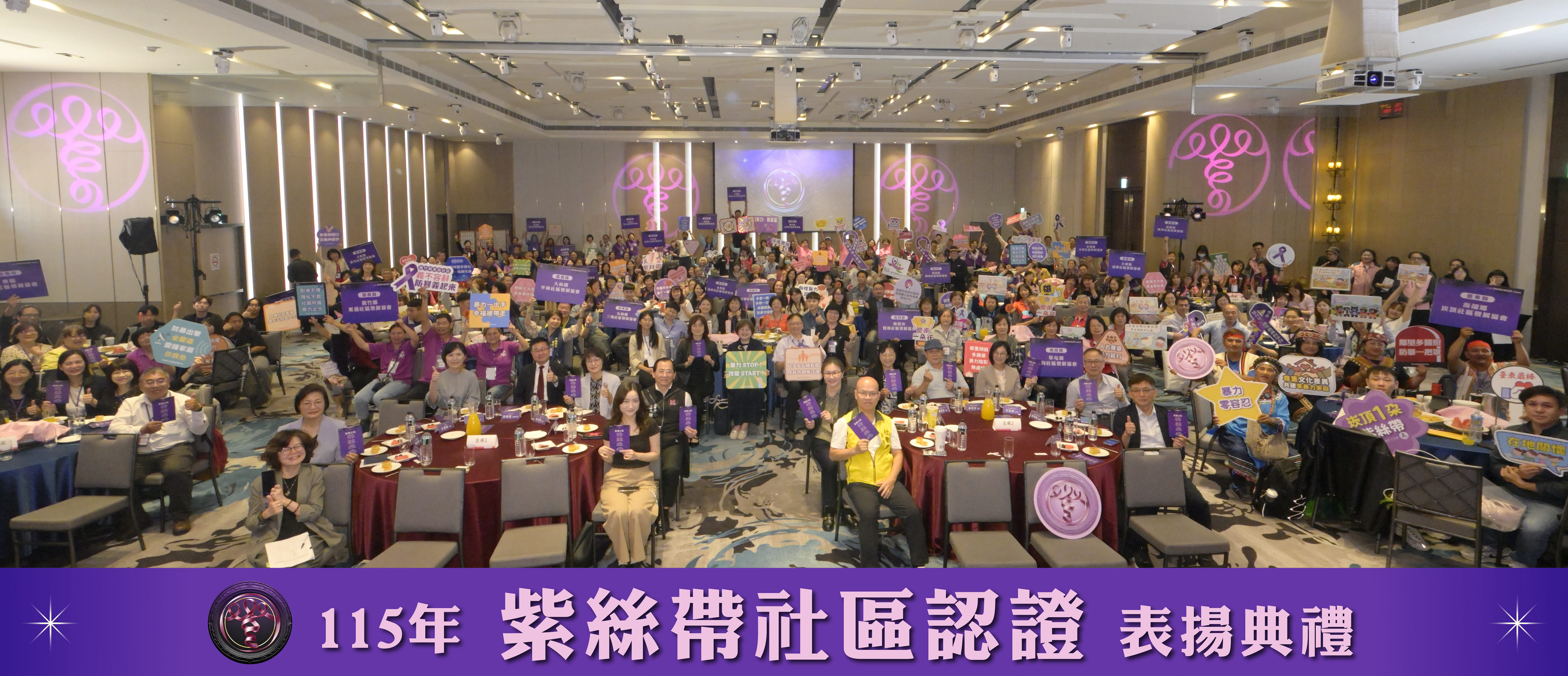 呂建德政務次長於典禮現場肯定社區及各地方政府於防暴工作的貢獻,落實強化社安網以家庭為基礎、以社區為中心的服務理念。紫絲帶社區認證制度除強化民眾對暴力之辨識、通報與零容忍意識外,更期待與社區組織攜手努力,結合在地草根力量,將防暴融入於日常。