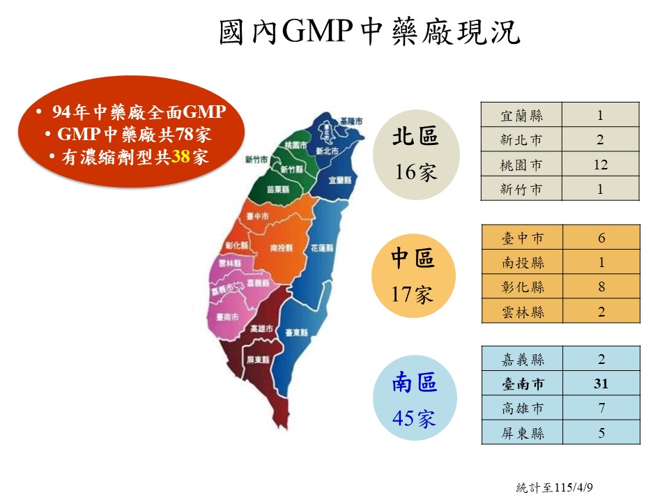 - 現有GMP中藥廠78家