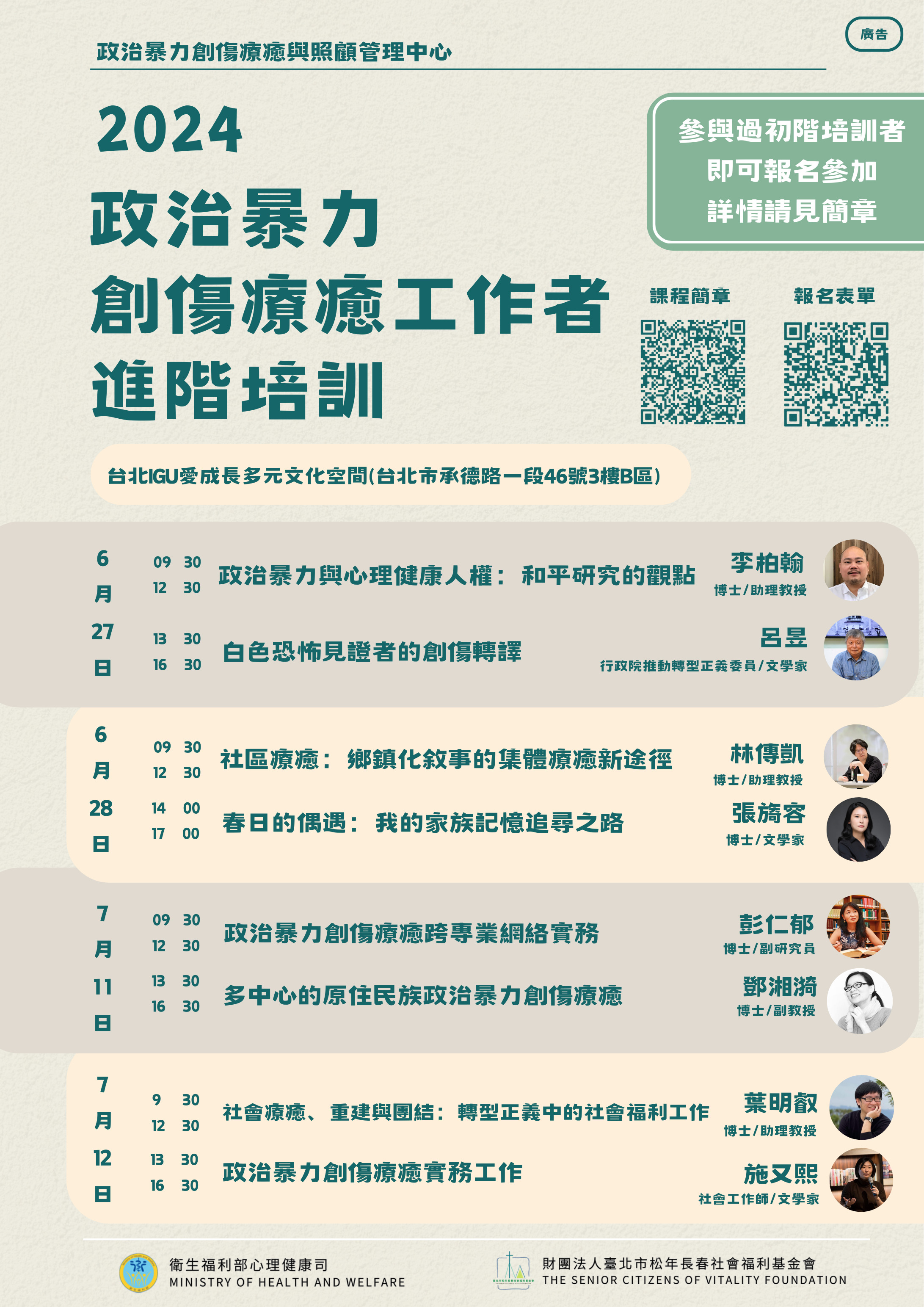 【2024年政治暴力創傷療癒工作者進階培訓】