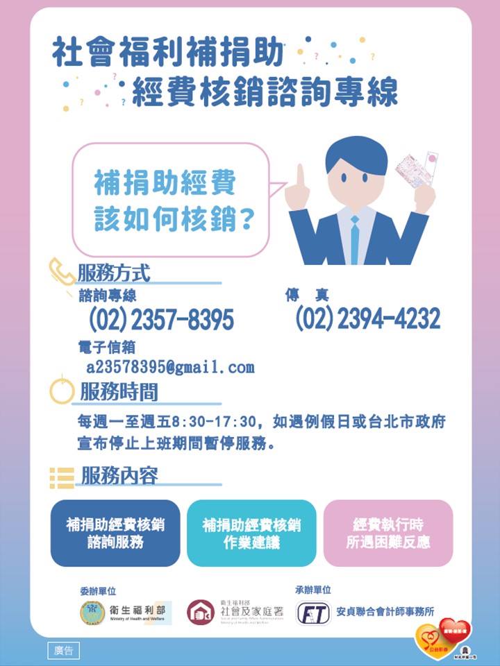 「衛生福利部108年度推展社會福利政策性補助項目及補助標準表」及「衛生福利部108年度推展社會福利補助作業要點暨申請補助項目及基準」業經本部保護服務司於中華民國107年12月28日以衛部護字第1071461309號函頒布,並自108年1月1日生效。