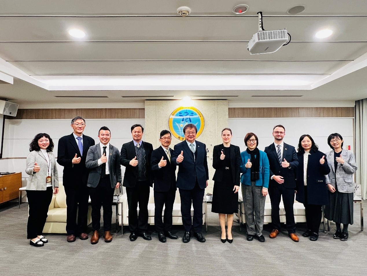 德國經濟辦事處首席代表暨處長Dr. Eva Langerbeck率團於2月24日來部拜會,由邱部長泰源接見,資訊處、醫事司、科發組、食藥署、健保署及國合組陪同,雙方就臺德醫衛發展進行交流,並由德方分享本年4月將舉辦之柏林數位醫療展(DMEA Berlin)及5月醫療科技論壇。