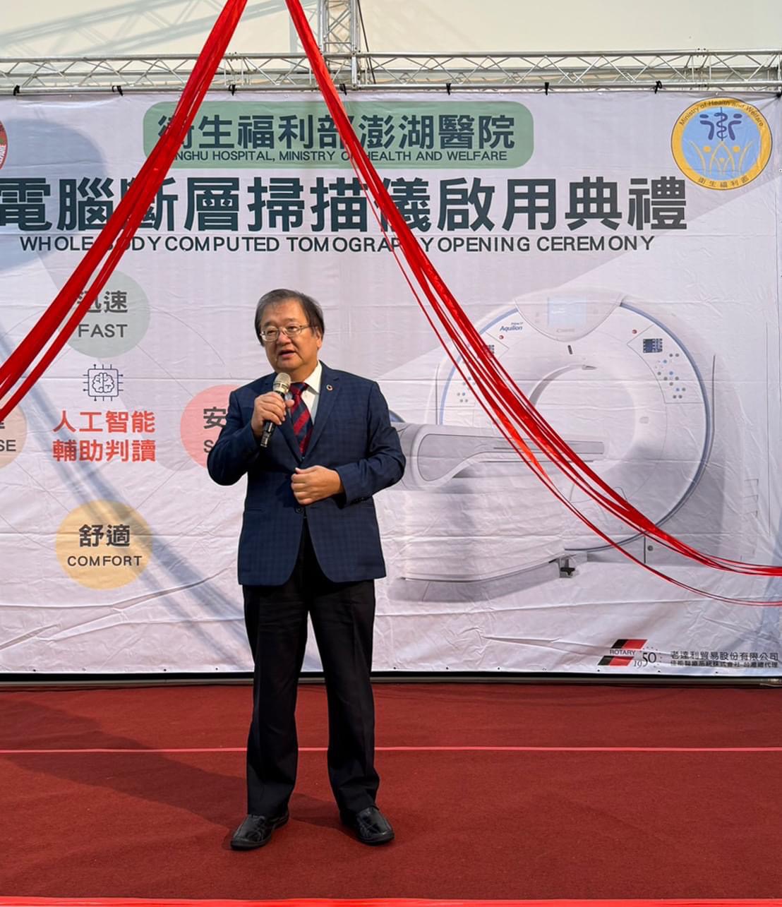 衛生福利部部長邱泰源致詞中提到,從他擔任立法委員開始,就非常敬佩楊曜委員為澎湖醫療軟硬體建設的努力,更攜手合作,從112年開始,為澎湖醫院引進介入治療暨血管攝影X光機後,楊曜委員不斷地精益求精,更是爭取引進跟台大醫院同等級的電腦斷層掃描儀,就是要讓離島居民跟台灣本島享有一樣的就醫水準,落實醫療平權。