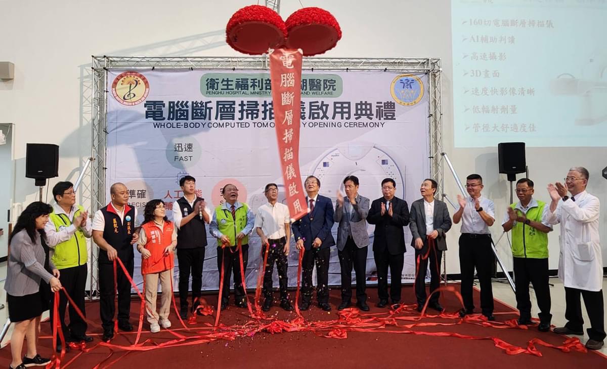 今(06)日上午衛生福利部邱部長泰源率團隊蒞臨澎湖醫院,主持揭牌啟用典禮,楊立法委員曜、陳縣長光復、陳議長毓仁等地方民意代表共襄盛舉,由澎湖醫院匡院長勝捷簡報介紹,澎湖醫院引進 CANON 全新 Aquilion Prime SP 160 切電腦斷層掃描儀,採用最新影像技術,不僅提供最精準高品質低劑量影像外,更具備0.35秒極快掃描速度,超快速3D立體影像成像技術,提供多角度多重切面影像,能搭配各種應用自動分析軟體使用,加上極佳的影像解析度及影像細緻度,將成為澎湖醫院協助醫師在診斷與追蹤疾病不可或缺的利器。