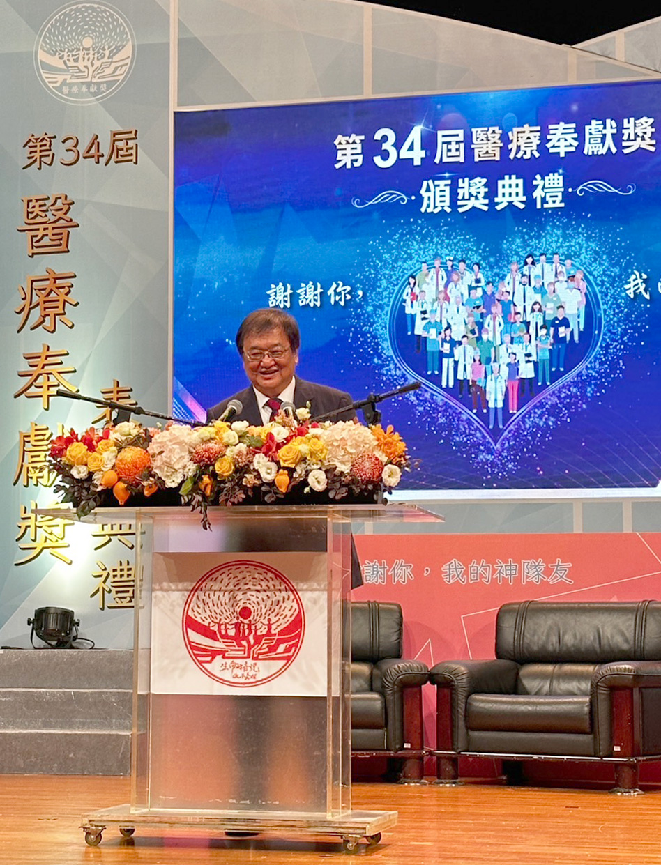 衛生福利部邱泰源部長今日出席「第34屆醫療奉獻獎頒獎典禮」,肯定每位得獎者都是醫事人員的典範,感謝得獎者窮盡生命為醫療領域無私奉獻,努力讓全台各角落能落實醫療平權,凝聚溫暖與關懷的力量,逐步邁向「健康台灣」的願景。
